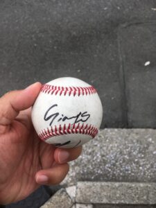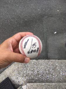ファールボールはもらえるからグラブ持って行けって言っていたら本当にボールゲットしました。